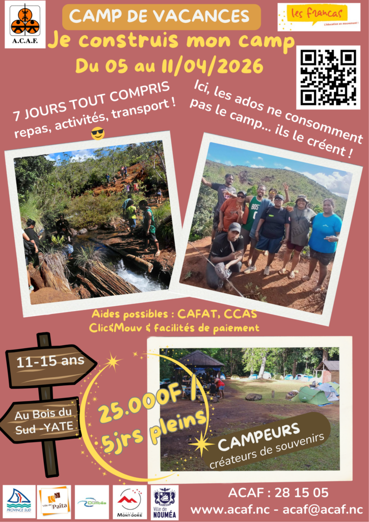 Sachez que des organismes tels que la CAFAT, la Province Sud, le CCAS proposent des aides financières aux vacances afin de faciliter l’accès aux loisirs de vos enfants.
