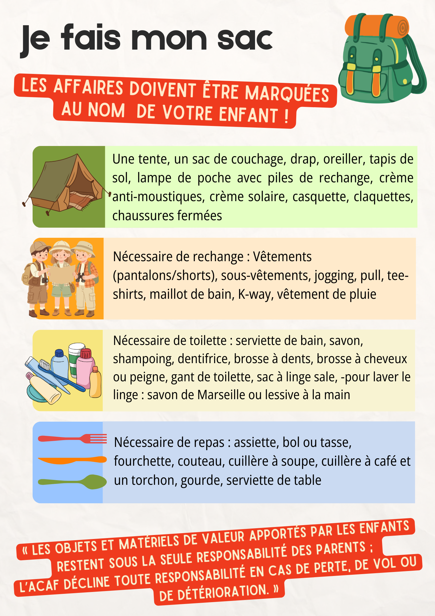 La signature de la fiche d’inscription et de la fiche sanitaire par le responsable légal est réglementairement obligatoire.