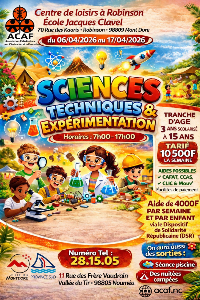 Ces stages durent chacun 14 jours minimum, et doivent se faire dans un Centre de Vacance et de Loisirs (CVL) déclaré auprès de la Direction de la Jeunesse et des Sports de la Nouvelle-Calédonie (DJS NC). Ces deux stages doivent avoir lieu en situation d’encadrement d’une équipe d’au moins deux animateurs. Ces stages sont gratuits, vous pouvez être indemnisés en tant que directeur stagiaire. Au nom de la qualité éducative des loisirs enfance, de l’engagement social et citoyen, l’ACAF encourage les stagiaires à multiplier les expériences pratiques, dans la limite des délais réglementaires, plutôt qu’une course de vitesse pour l’obtention du brevet. C’est la pratique de terrain qui confortera le mieux l’acquisition des compétences. L’ACAF est aussi organisatrice de CVL. Elle organise différents centres de loisirs avec les 4 communes du Grand Nouméa (Nouméa, Dumbéa, Mont-Dore et Païta), et elle peut vous accueillir en stage pratique. Pour vous inscrire en tant que directeur ou directeur adjoint dans l’une de nos actions, vous pouvez nous contacter par mail (acaf@acaf.nc), par téléphone (28 15 05) ou venir nous voir (bureau situé à la 1ère Vallée du Tir, au 11 rue des frères Vautrin).